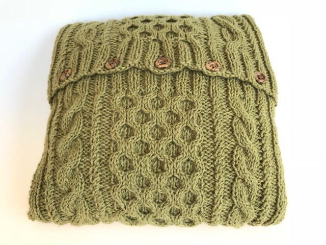 Met de hand gebreid wollen kussen door één van onze cliënten en daarom uniek.